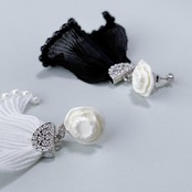 ●主な素材は石塑粘土(石の粉から出来た粘土)にレジンコーティング、パール付きチュール、メタルを使用。