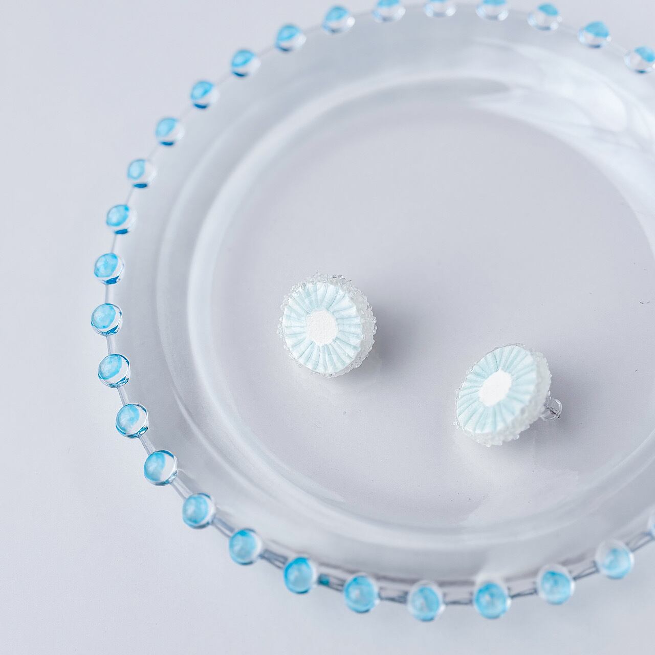 ♢ちゅるんと可愛い透明のカラー部分と、側面にはお砂糖の様なガラスの粒々がキラリ✴︎