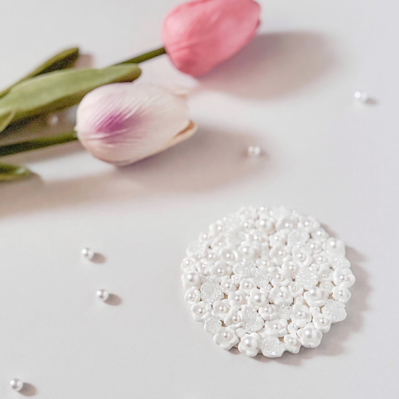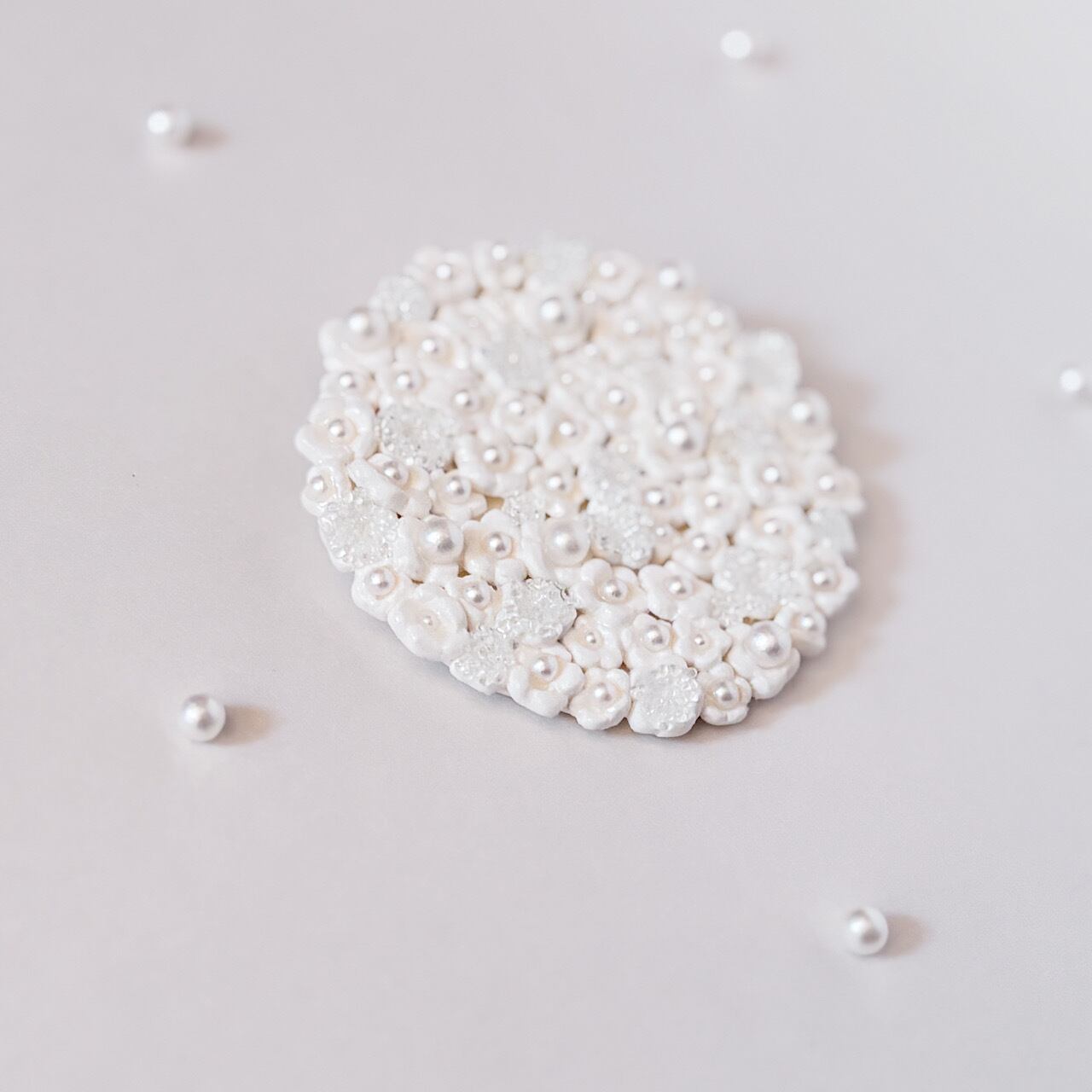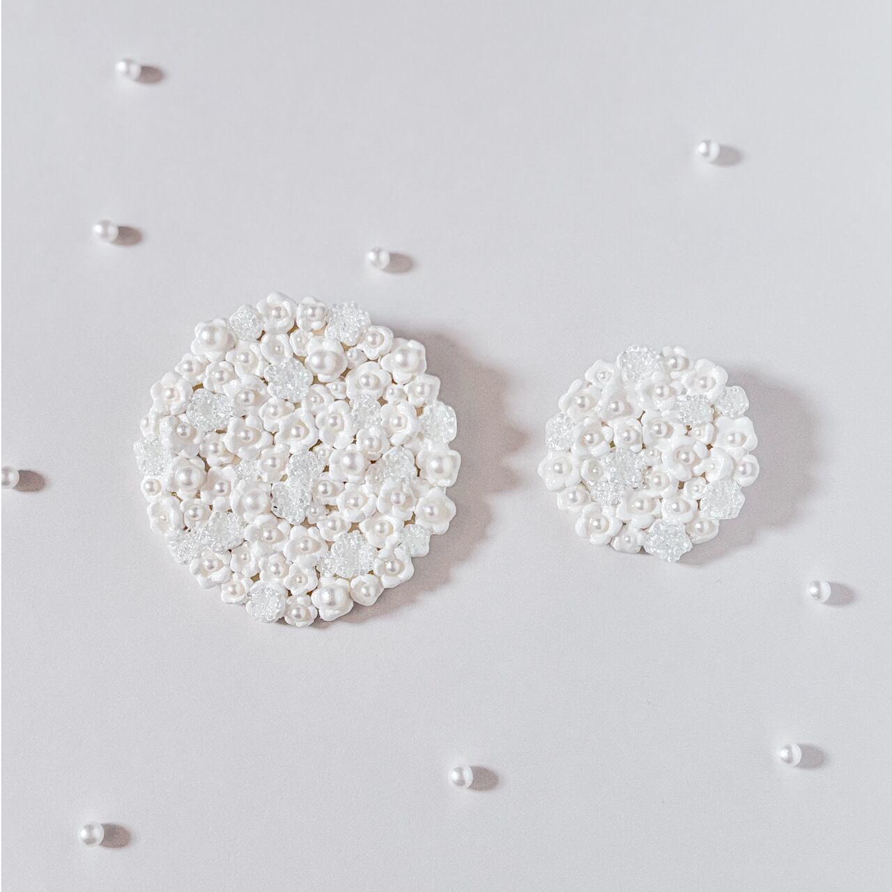 コサージュとは違った上品な輝きを放つ陶器の様なブローチです。限定3点で人とかぶらず思い出に残るシーンを彩ります♪