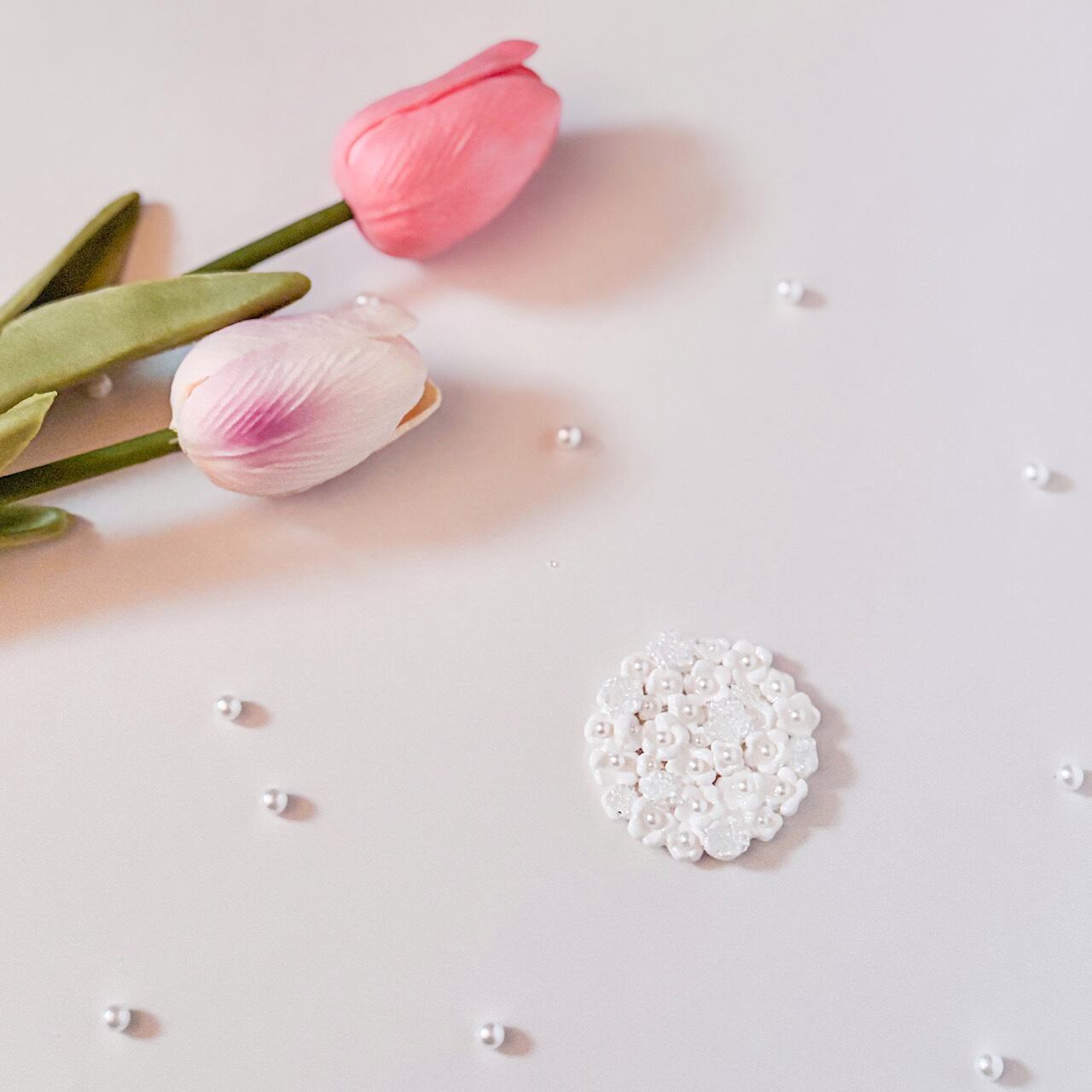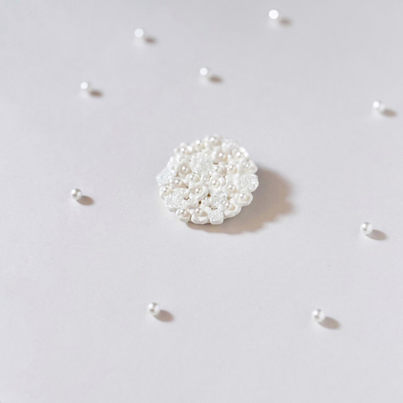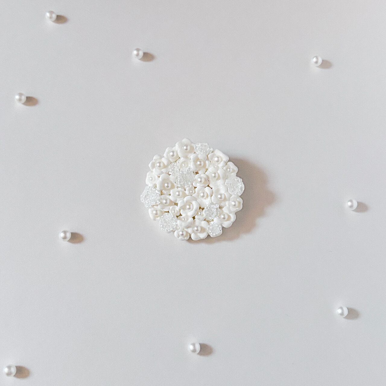 【小サイズ】パールとお砂糖つけた白い花束ブローチ